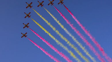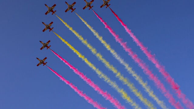 Estaba prevista la exhibición de 56 aviones y 29 helicópteros en la parada militar para conmemorar el Día de la Hispanidad, que estará presidida por los reyes Felipe VI y Letizia, acompañados de la Princesa Leonor.