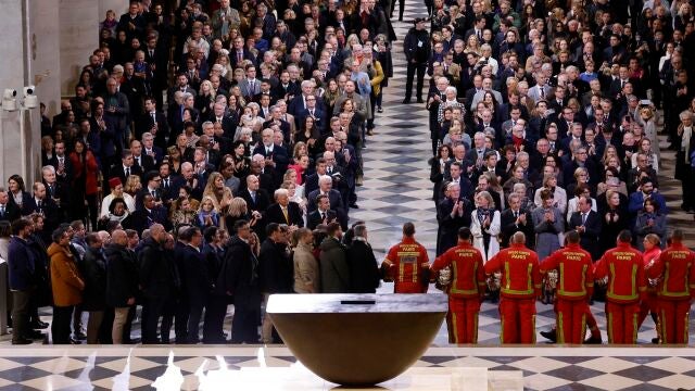 Ninguno de los tres acudió al solemne acto celebrado en la catedral parisina, completamente rehabilitada cinco años después del incendio que arrasó el templo gótico.