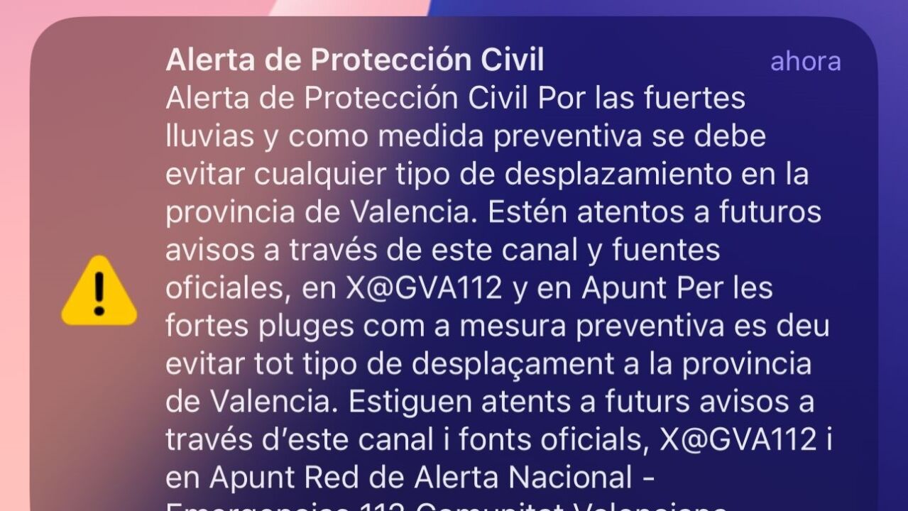 Las alertas de Protección Civil han dado mucho que hablar estos días a raíz de la catástrofe en Valencia a causa de la DANA. Estos mensajes se envían a los teléfonos móviles de la población para advertir de un riesgo importante para las personas o bienes, aunque los vecinos afectados por el temporal han lamentado que dichas advertencias llegaron tarde.