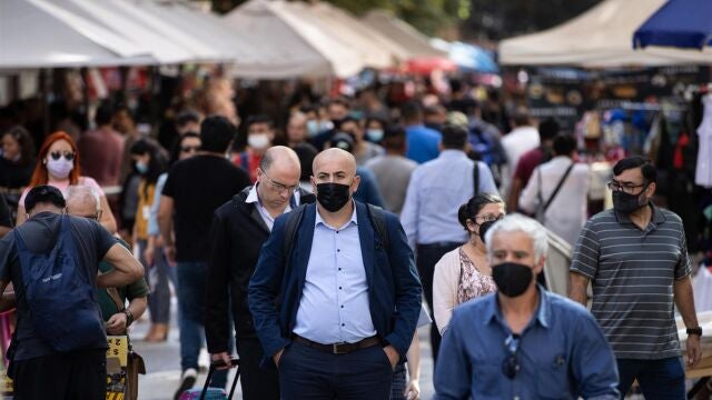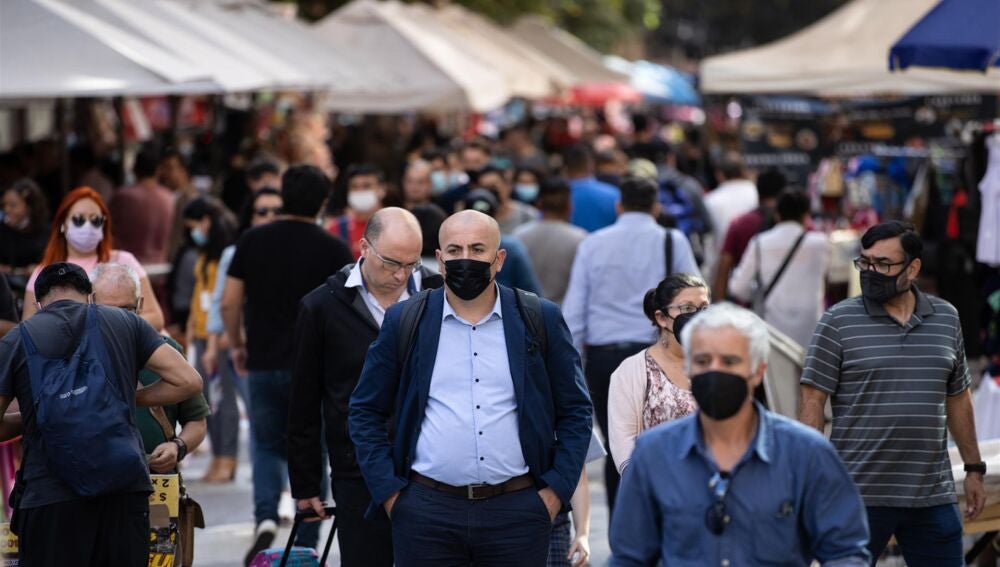 Varias personas caminan por la calle con mascarilla. | EFE/Alberto Valdés