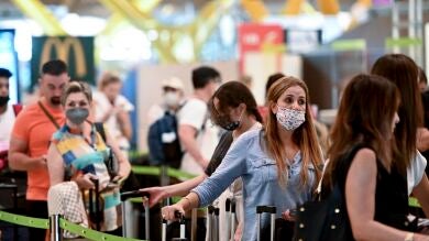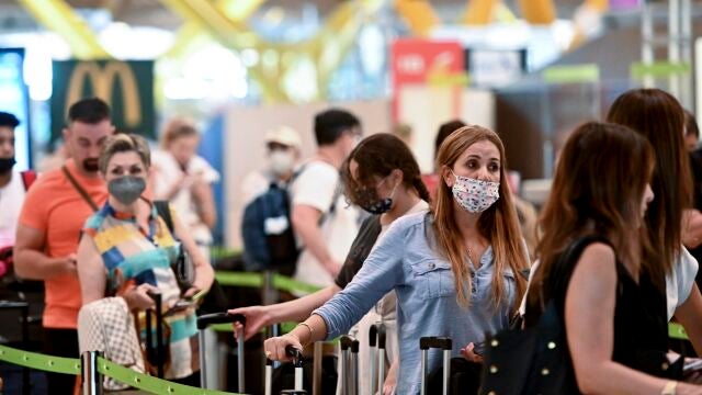 Imagen de archivo de varias personas en el Aeropuerto de Barajas de Madrid. | EFE/Fernando Villar