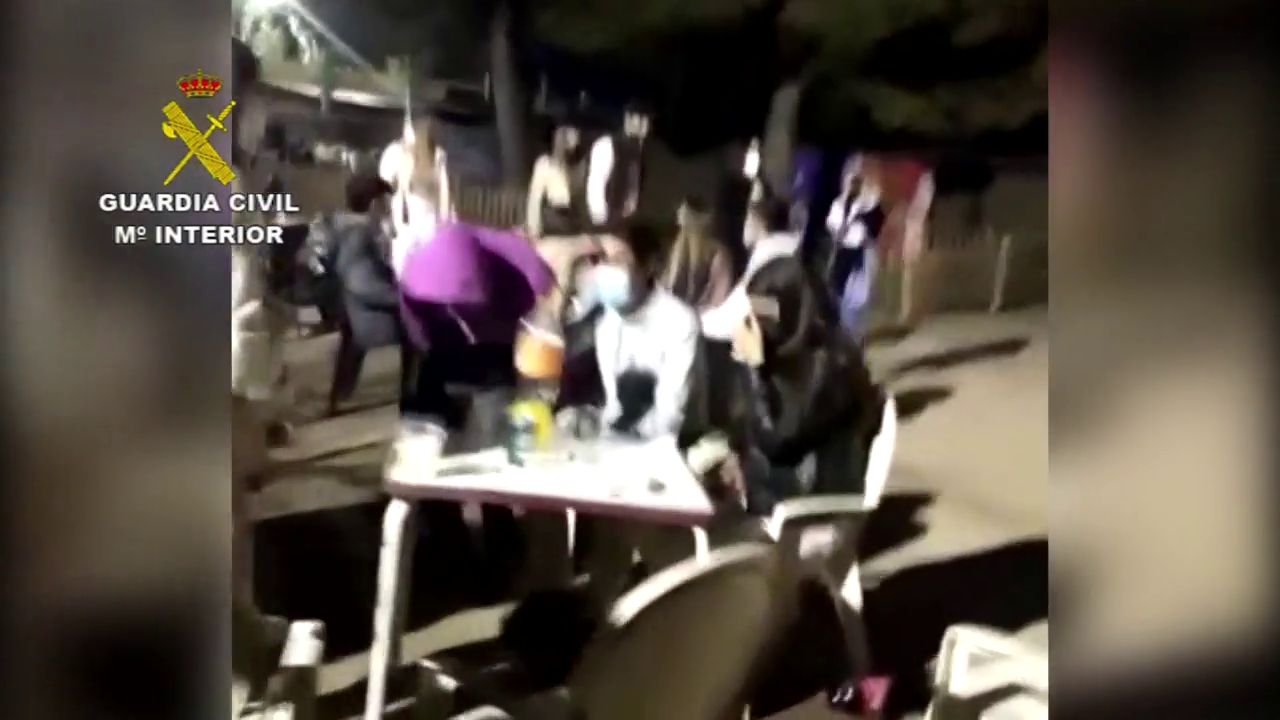 Cuando las patrullas de seguridad ciudadana llegaron al lugar, observan ocho autobuses y confirman con los conductores que en ellos se había trasladado a todos los universitarios desde la calle Almansa, en Madrid capital. En el interior de la finca, la Guardia Civil se encuentra con cientos de jóvenes sin mascarilla y sin respetar ninguna de las medidas de seguridad sanitaria.