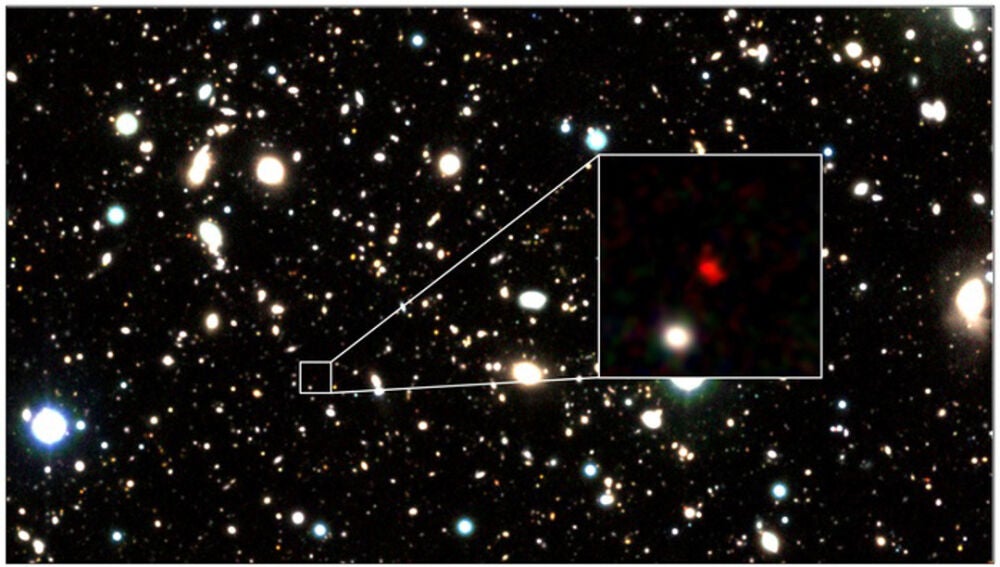 Después, el equipo realizó observaciones de seguimiento con el Atacama Large Millimeter/submillimeter Array (ALMA) para confirmar la distancia, que es 100 millones de años luz más lejana que GN-z11, la actual poseedora del récord de la galaxia más lejana.