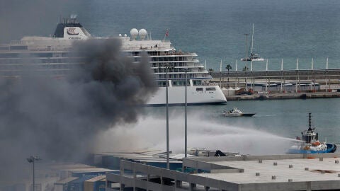 Espectacular incendio en el puerto de Barcelona: un camión de mercancías arde y provoca una inmensa columna de humo