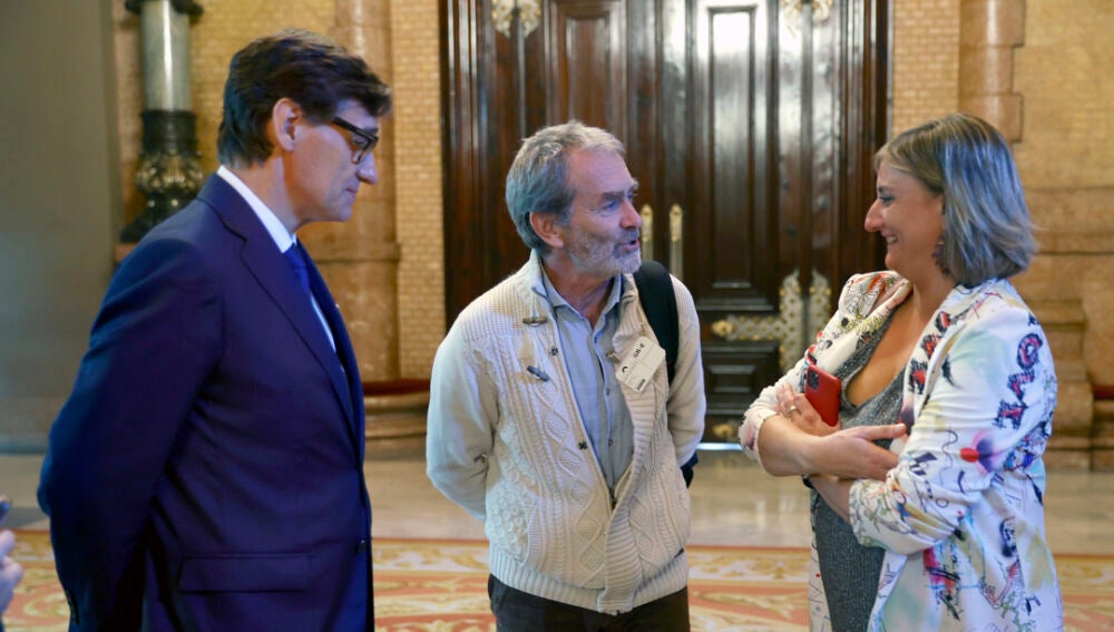 El líder del PSC, Salvador Illa, y el epidemiólogo Fernando Simón se han reencontrado este miércoles en el Parlamento catalán, donde el que fuera portavoz científico del Gobierno durante la pandemia ha sido invitado por el exministro de Sanidad y también ha podido conversar con la presidenta de la Cámara, Anna Erra, y con la exconsellera catalana de Sanidad Alba Vergés.