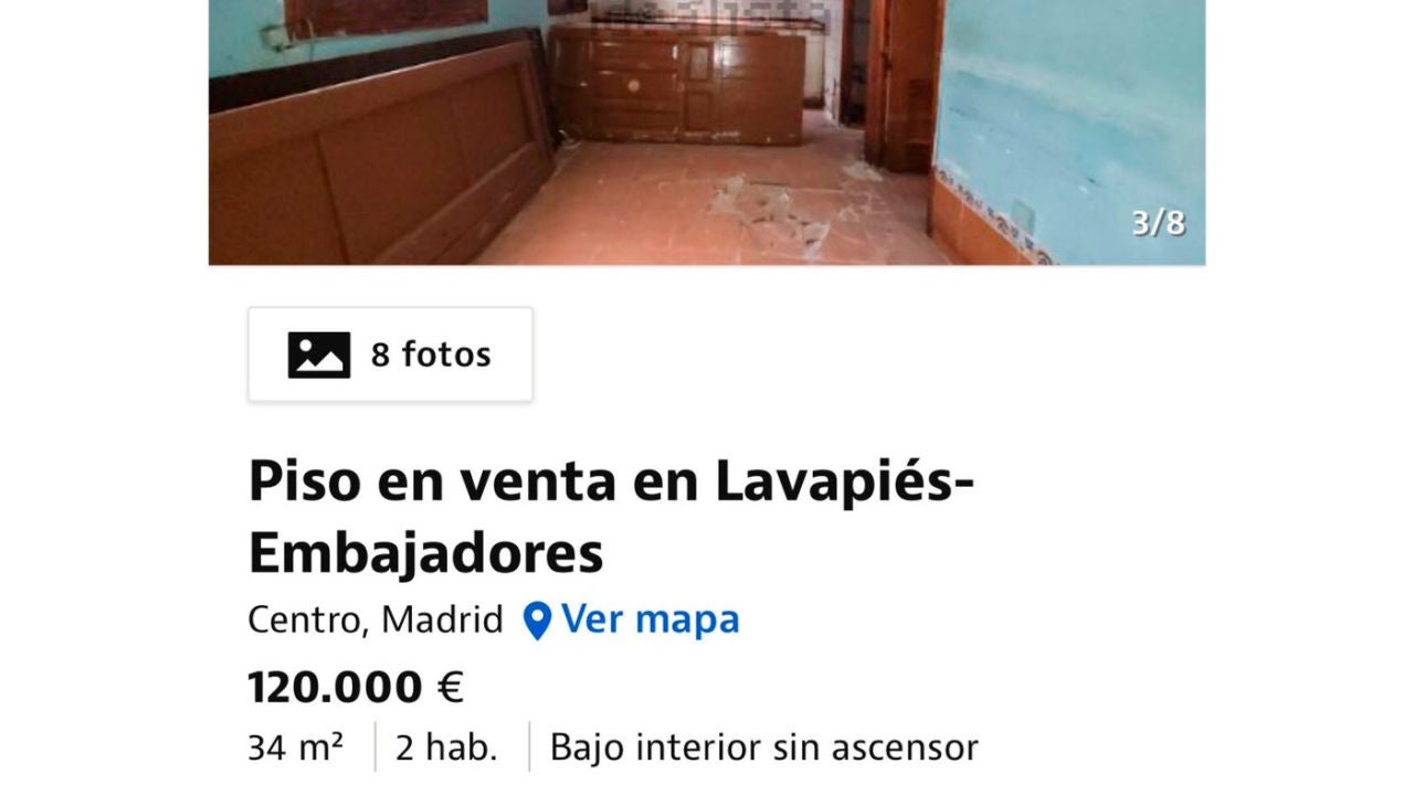 El 'increíble' piso en Lavapiés que se vende en Idealista como una "magnífica oportunidad"