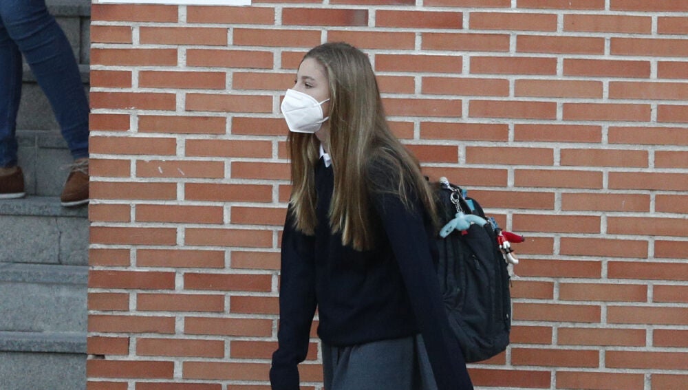 Comienza su curso de tercero de la ESO en el centro donde estudiará aún por dos años, pendiente de saber si seguirá los pasos de Leonor y estudiará fuera de España los dos años de bachillerato.