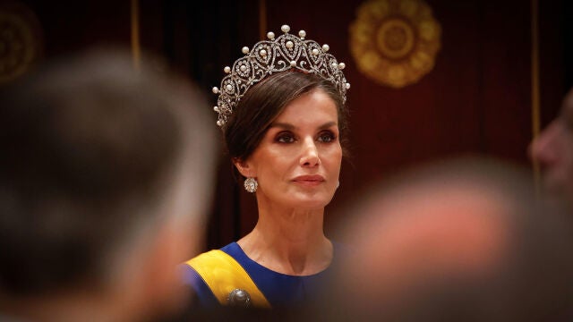 La reina de España, Letizia, durante la cena de gala con motivo de su visita de Estado a Países Bajos. | EFE/ Chema Moya