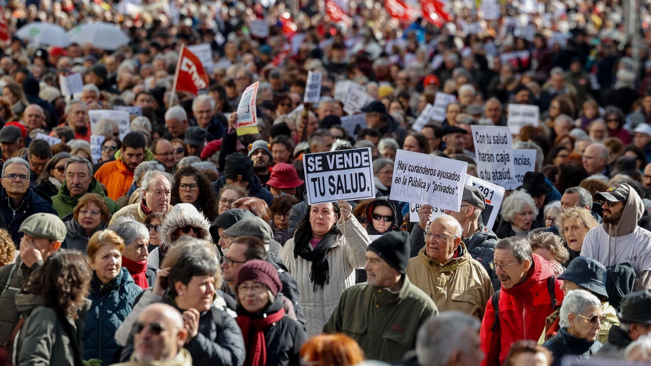 Miles de personas se manifiestan en Madrid contra la política sanitaria de Ayuso: "La sanidad pública está bajo el asedio de buitres"