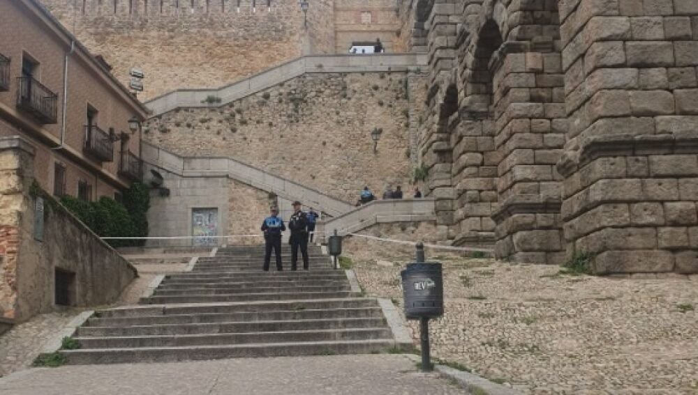 Un hombre de 63 años del Reino Unido ha muerto sobre las 13:10 horas tras caer desde el mirador del acueducto de Segovia, al lado de las escaleras de acceso al Postigo.