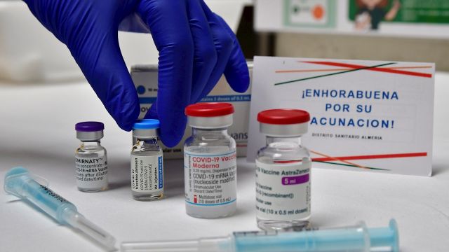 Imagen de las cuatro vacunas disponibles en un punto de vacunación. | EFE