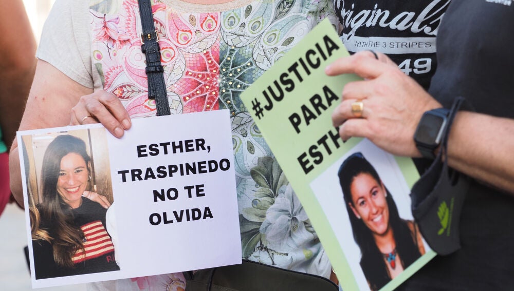 Detalle de una pancarta que reza 'Esther, Traspinedo no te olvida' durante una concentración ciudadana en su recuerdo. | Photogenic/Claudia Alba / Europa Press