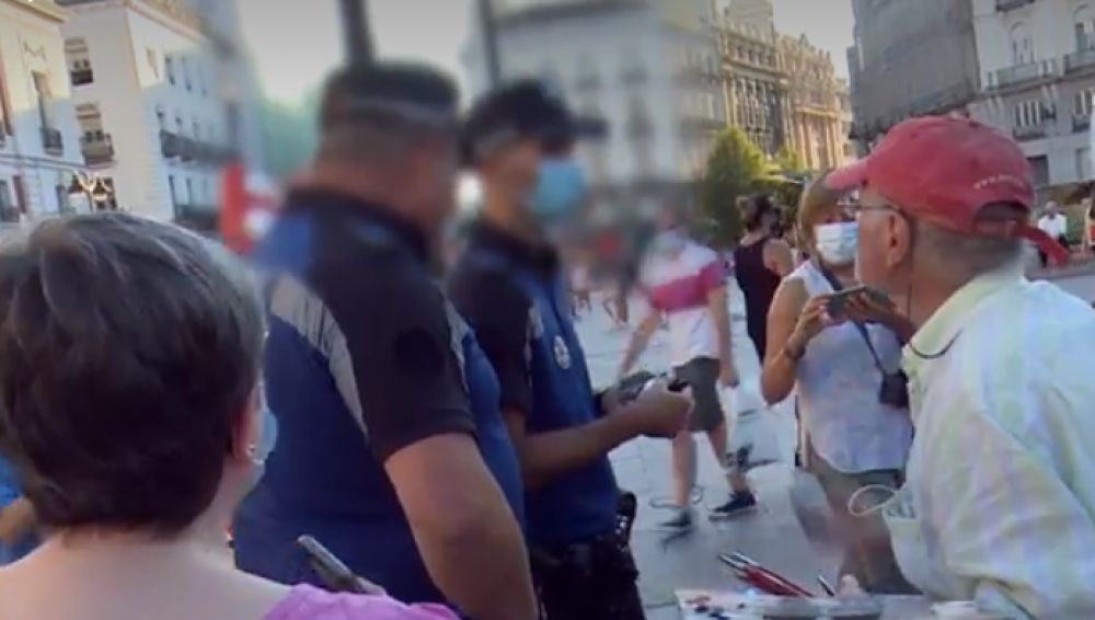 Sin embargo, cuando este viernes López continuaba en Sol adelantando su cuadro, sucedió un encuentro desagradable. La Policía Municipal se ha acercado a él para pedirle "los papeles" bajo la sorpresa de los asistentes al ver que no conocían al referente del hiperrealismo, como ha podido grabar el equipo de Espejo Público.