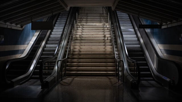 Unas escaleras del Metro de Madrid, durante el apagón masivo en España | Alejandro Martínez Vélez / Europa Press