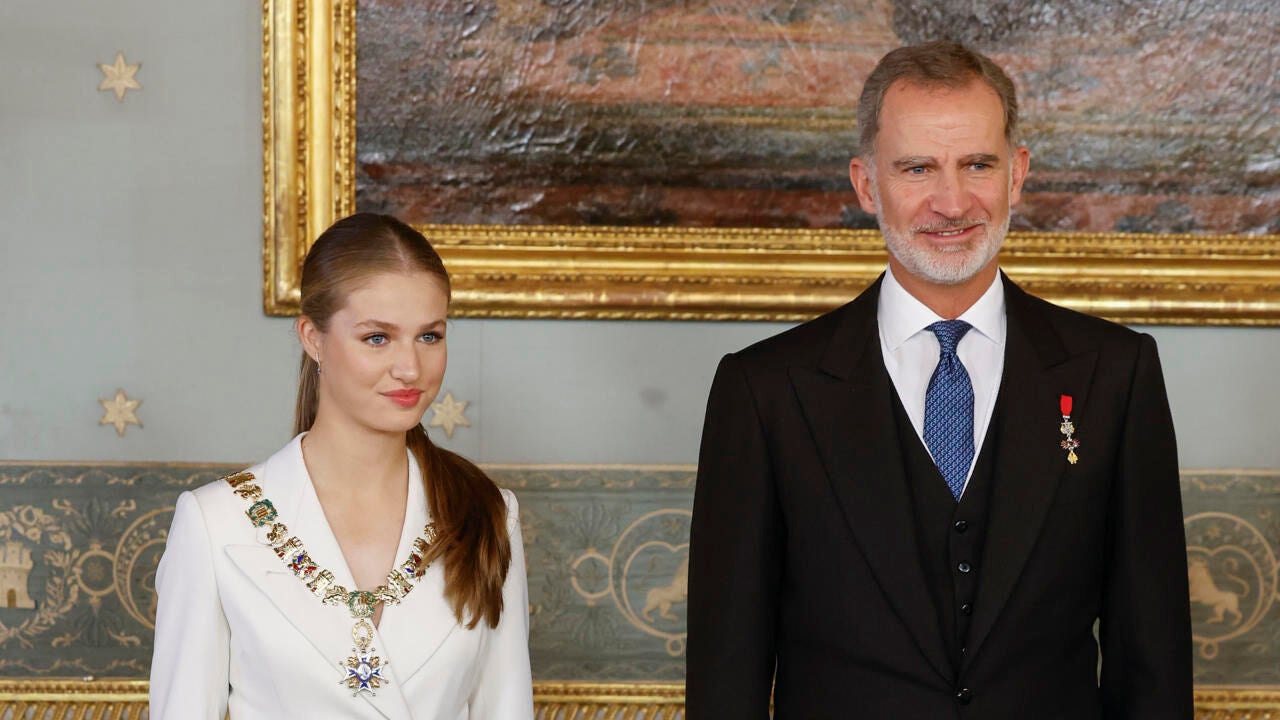 En un acto que ha tenido lugar en el Palacio Real, concretamente en el Salón de Carlos III, bajo la atenta mirada del retrato de su antepasado pintado por Mariano Salvador Maella y bajo una lámpara de flor de lis, en alusión a la dinastía Borbón, ha sido donde la princesa Leonor ha recibido el collar de Carlos III.