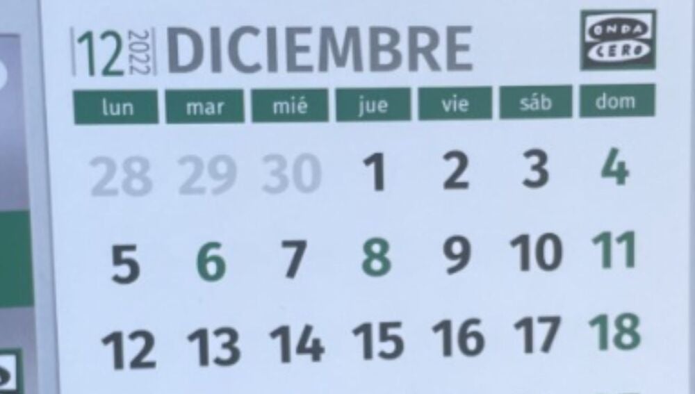 Antes de las navidades quedan dos festivos nacionales pendientes correspondientes al puente de diciembre.