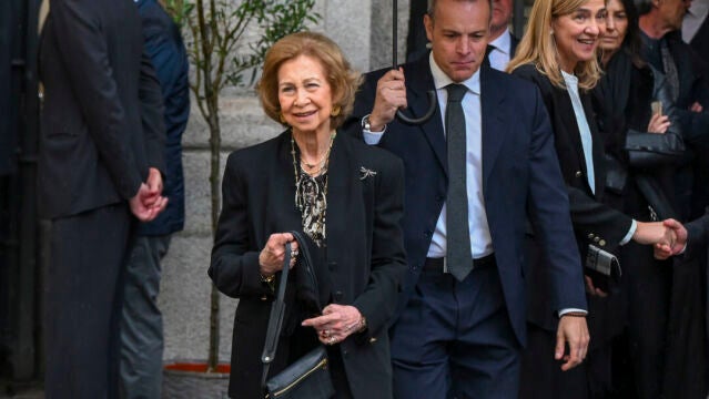 Doña Sofía tuvo su última aparición el pasado lunes en el funeral de su sobrino, Fernando Gómez-Acebo, que congregó en Madrid a los reyes, a Juan Carlos I, las infantas Elena y Cristina y otros miembros de la familia.