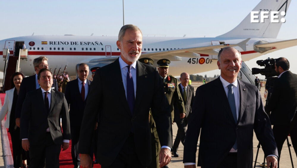 El monarca viaja junto a Albares invitado por el rey jordano Abdalá II, en una visita reducida debido a la escalada bélica en la región.