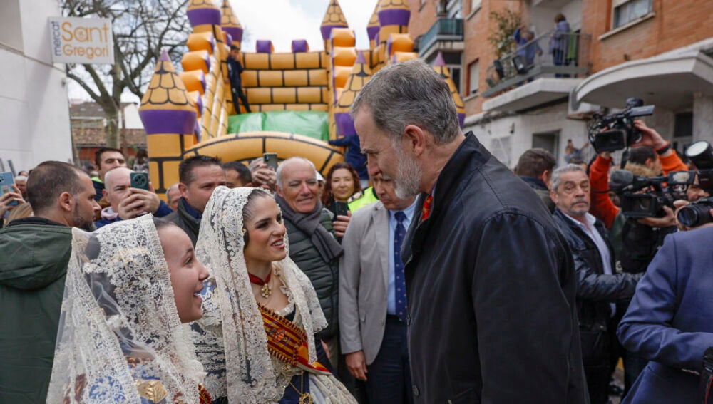 Durante el recorrido que ha durado cerca de una hora, Felipe VI ha saludado a las familias que se han acercado y se ha hecho fotos con todas las personas que se lo han pedido. Además, ha hablado durante unos minutos con las falleras mayores de Torrent, Alicia Moreno y Ana Barberà a las que ha preguntado cómo están viviendo esta semana y su reinado. Alicia Moreno ha expresado que "nunca lo olvidaremos".
