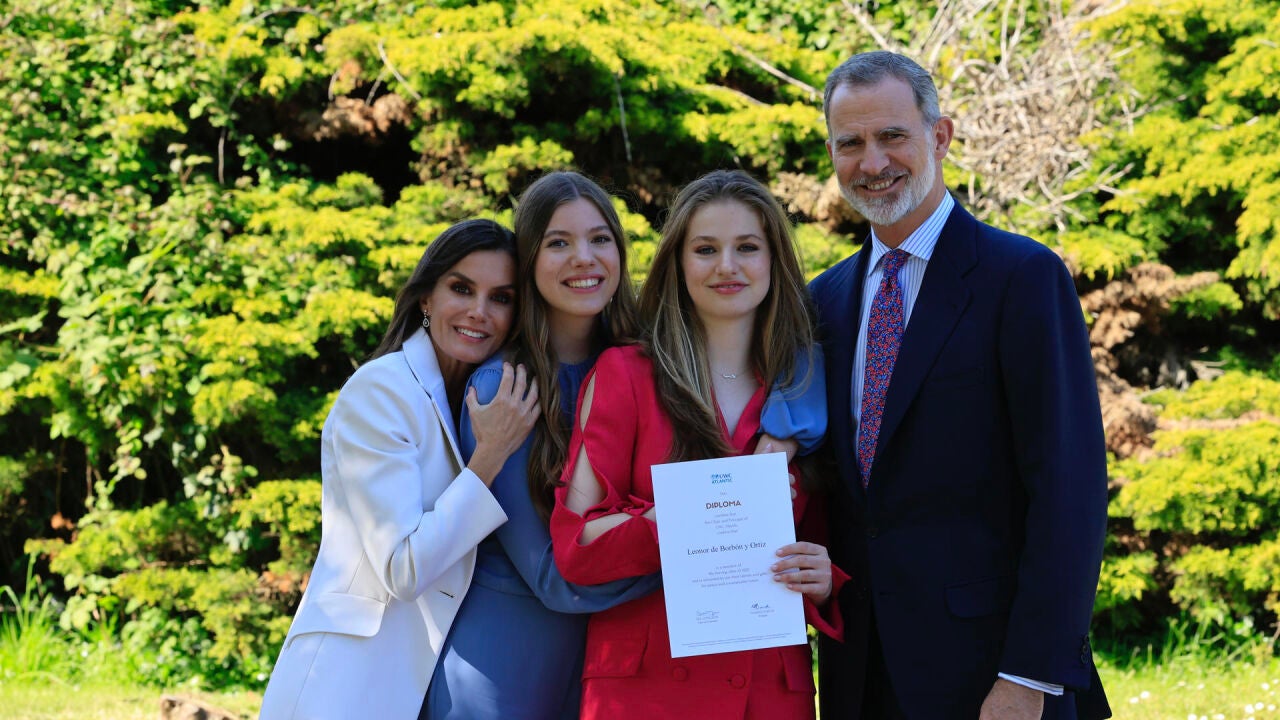 La Casa Real ha publicado en sus redes sociales unas fotografías de los reyes Felipe y Letizia, junto a la infanta Sofía y la princesa Leonor en la graduación de la última en Gales.