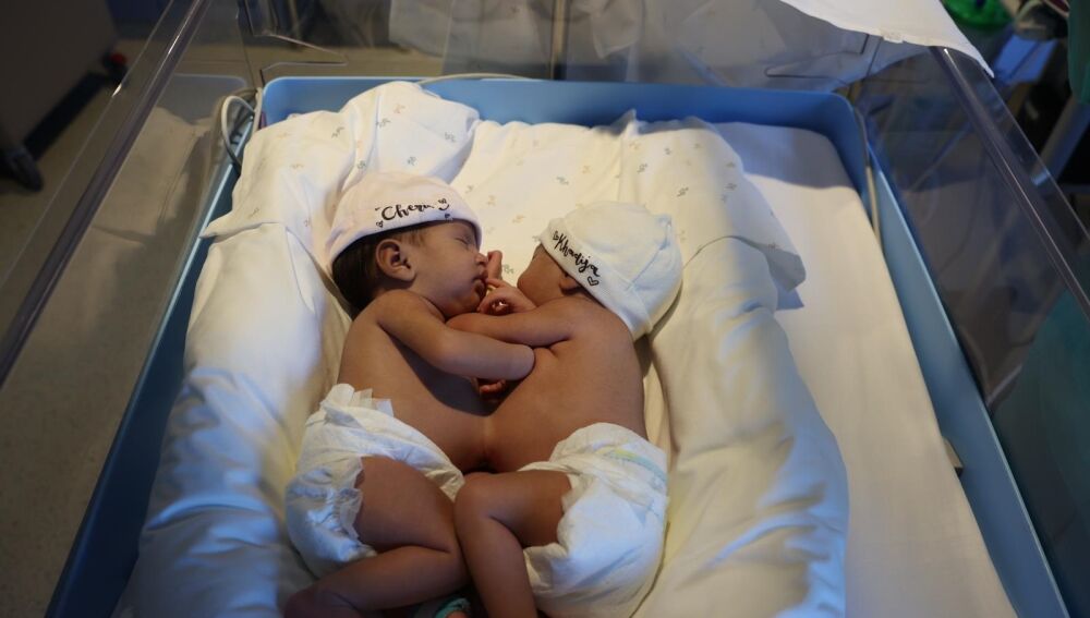 Las dos hermanas, Khadija y Cherive, nacieron el pasado 8 de octubre unidas por la parte superior del abdomen, con un cordón umbilical único y un peso conjunto de 5,2 kg.