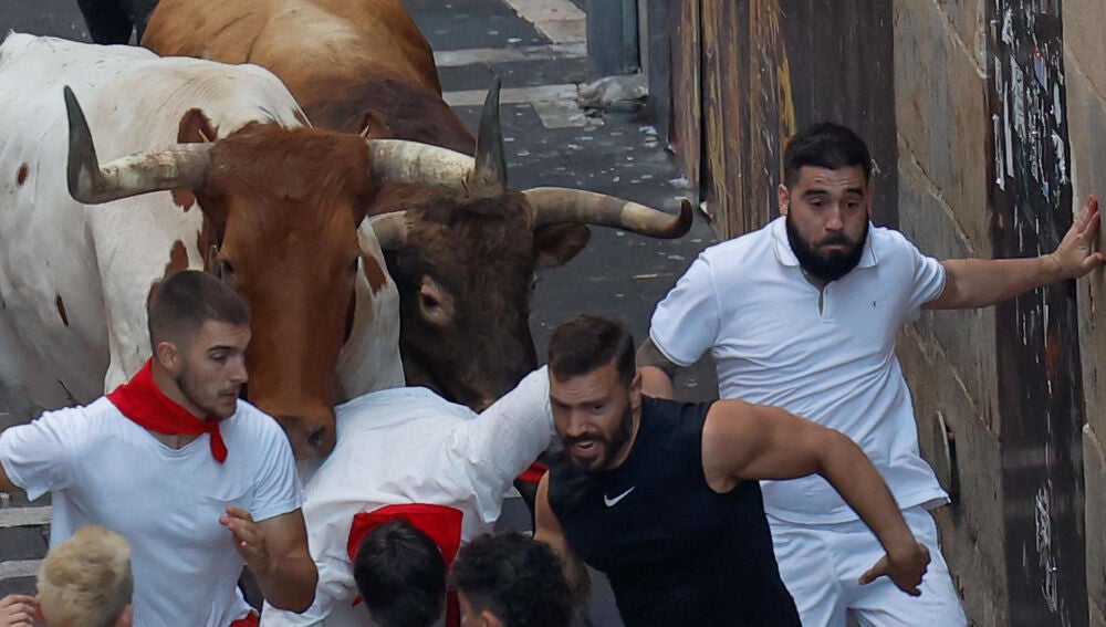 La Cruz Roja ha informado en su primer parte médico de que un corredor ha sido trasladado a dependencias médicas por una herida de asta en la pierna y otros dos con cornadas, una en la espalda y otra en la zona genital.