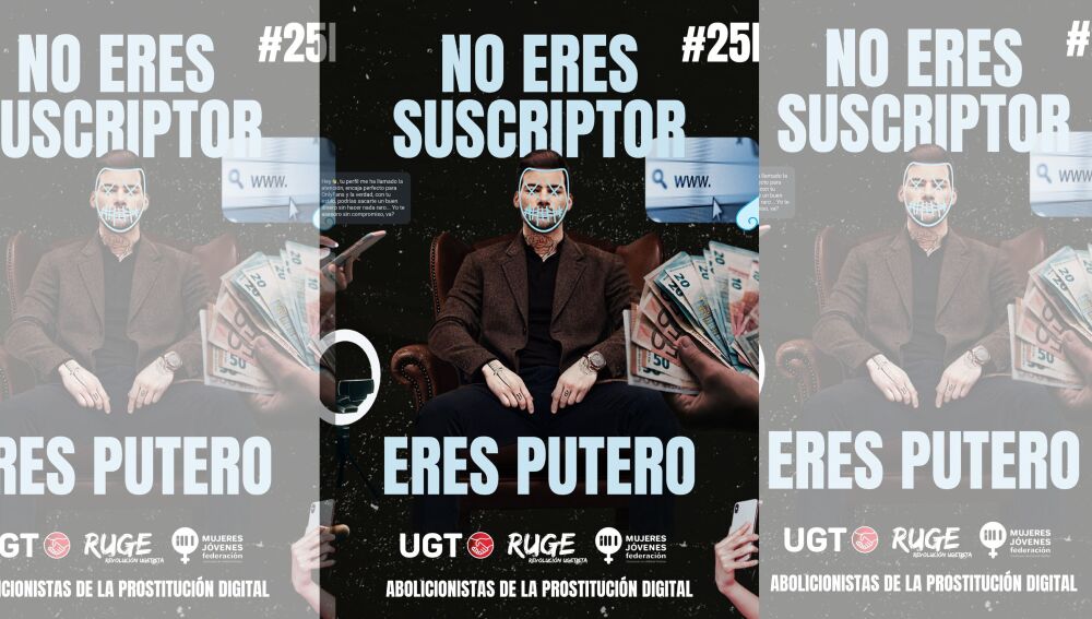La Unión General de Trabajadoras y Trabajadores (UGT) ha presentado con motivo del Día Internacional para la Eliminación de la Violencia contra la Mujer (25N) una campaña contra las nuevas violencias machistas digitales. Todo ello bajo el lema "No eres suscriptor, eres putero". El sindicato ha llamado a abolir la prostitución digital de plataformas como OnlyFans. Plataformas que, según el sindicato, blanquean la prostitución y la pornografía.