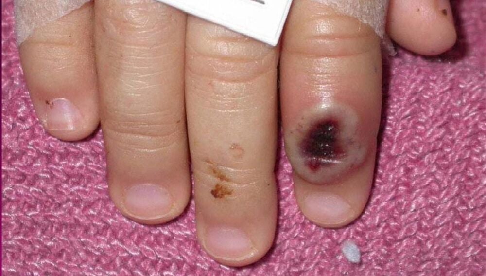 Además, apuntan "es posible una erupción maculopapular que puede comenzar en orofaringe y cara y que se hace generalizado sin respetar palmas ni plantas y pudiendo involucrar mucosas y conjuntiva". Y añaden que "las lesiones cutáneas con frecuencia están agrupadas en zonas, con eritema subyacente y en áreas de contacto (periorales o genitales)".