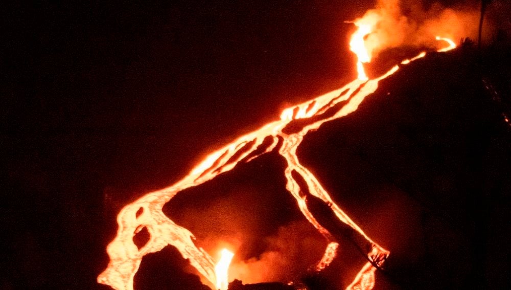 Los derrames de lava que se han producido en las últimas horas por la reconfiguración de los centros eruptivos del volcán de La Palma han ensanchado la colada que más preocupa, la que se ha quedado parada en el barrio de La Laguna.