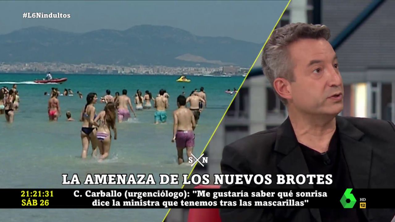 Este fin de semana han dejado de ser obligatorias las mascarillas en espacios exteriores. Cuando se anunció esta nueva relajación de las medidas contra el coronavirus, las palabras de la ministra de Sanidad, Carolina Darias, fueron: "Las mascarillas dejan paso a las sonrisas". El doctor de Urgencias del Hospital Ramón y Cajal de Madrid, César Carballo, se ha mostrado crítico ante estas declaraciones en el programa laSexta Noche.