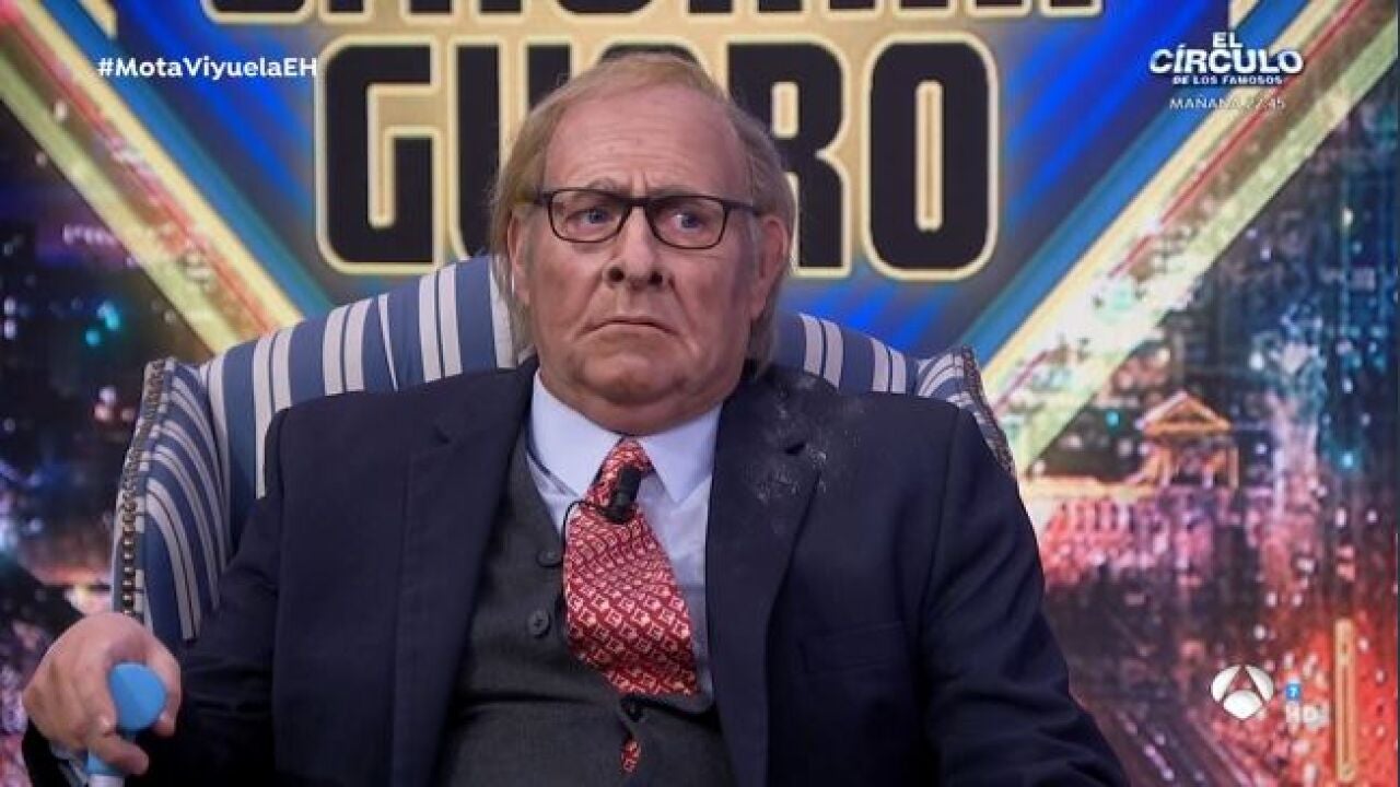Tras hablar durante escasos minutos, Motos le acompañó a sentarse en un sillón que le proporcionó el programa. "Tamames" se dirigió a él, en donde estuvo a punto de caerse al inclinarse el sillón. "Con cuidado, eh", le comentó el presentador a Latre al verle con "dificultades" al sentarse.