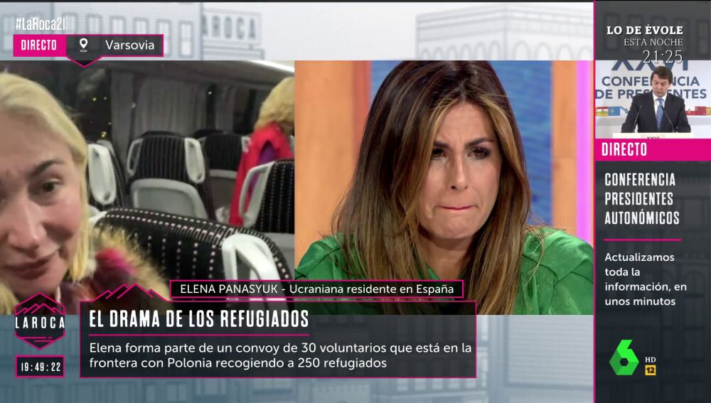 Nuria Roca se emocionó en pleno directo al hablar con Elena Panasyuk, amiga ucraniana con la que conectaron en el programa de La Roca, en laSexta. Elena es una mujer que reside en España y que ha viajado hasta Polonia junto a la Fundación Madrina para recoger a 250 refugiados.