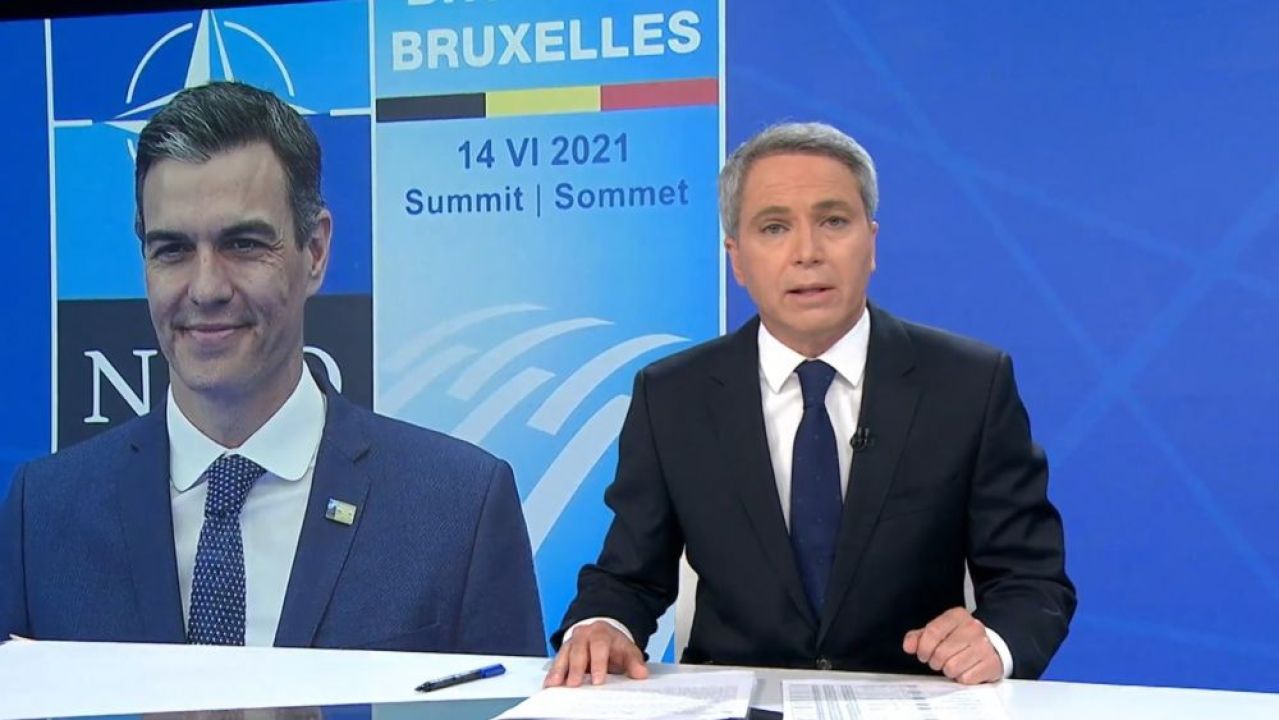 El presentador de 'Antena 3 Noticias', Vicente Vallés, ha desgranado al detalle el "breve encuentro" entre el presidente del Gobierno de España, Pedro Sánchez, y el de Estados Unidos, Joe Biden, en la cumbre de la OTAN en Bruselas.
