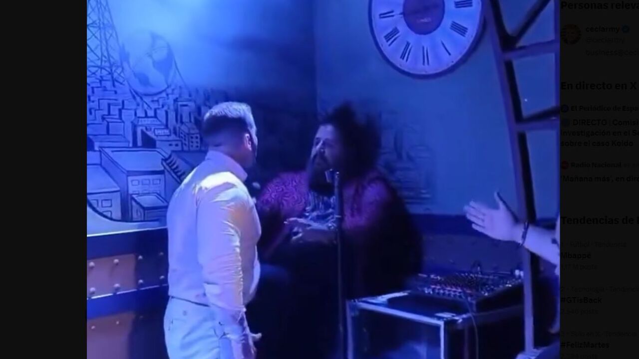 Tras un primer segundo de tensión, Caravaca fue agredido con un golpe en la cara ante la sorpresa del público que se encontraba en el lugar.