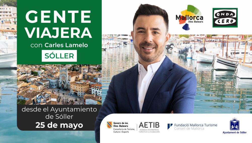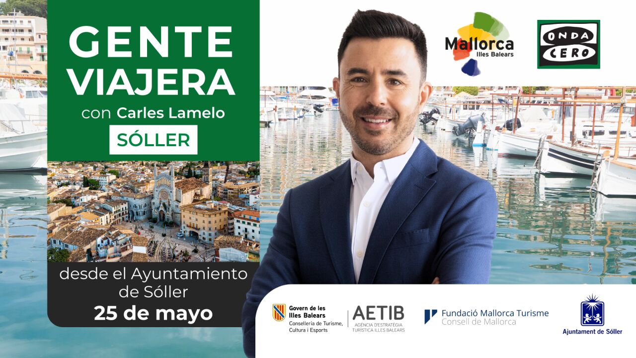 Este sábado 25 de mayo, ‘Gente viajera’, conducido por Carles Lamelo, se ha emitido directo desde el pórtico del Ayuntamiento de Sóller, situado en la Plaza de la Constitución, considerada una de las más bellas de Mallorca por su ágora central de piedra rosada, rodeada de edificios modernistas como la Iglesia de Sant Bartomeu de Sóller, el Banco de Sóller, Can Bordils o el propio Ayuntamiento.