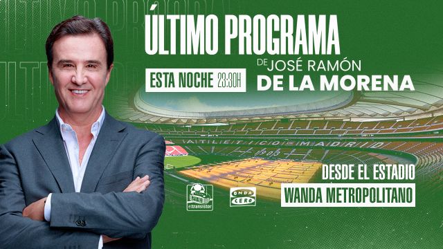 José Ramón de la Morena cuelga las botas. Uno de los más importantes referentes de la radio española se va a despedir con un emotivo y especial programa que va a realizar desde el estadio Wanda Metropolitano con muchos protagonistas como Enrique Cerezo, Miguel Ángel Gil o Simeone, que además de entrevistados serán testigos de la última función del presentador de El Transistor.