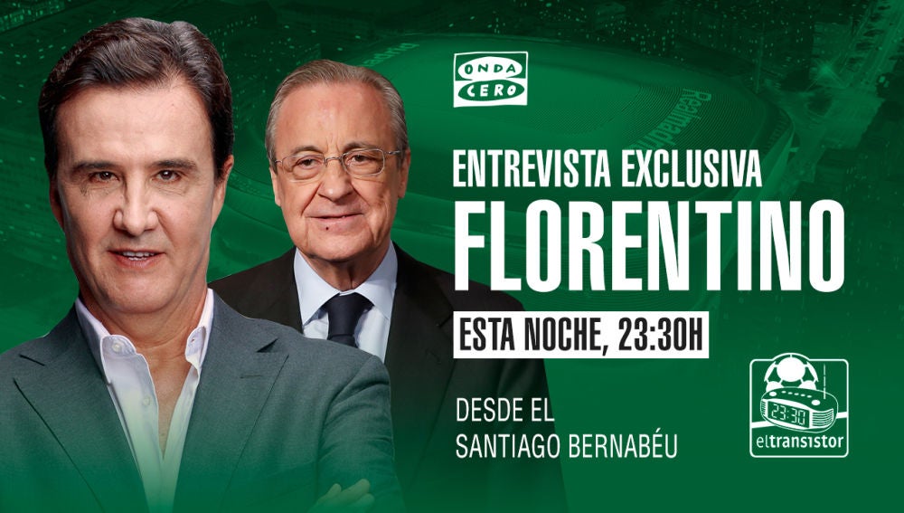 José Ramón de la Morena entrevista en exclusiva esta noche en El Transistor a Florentino Pérez, el presidente del Real Madrid, a partir de las 23:30 horas desde el estadio Santiago Bernabeu.